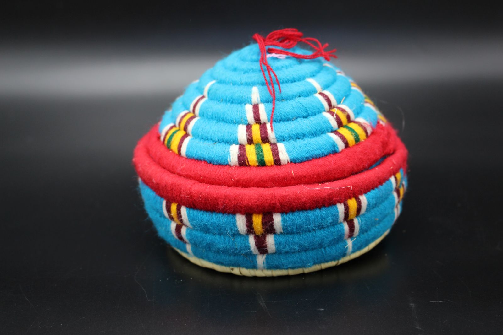 Sie sind gefertigt aus Bast und mit Wolle umwickelt.